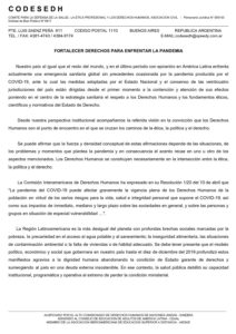 Comunicado CODESEDH – Fortalecer Derechos para Enfrentar la Pandemia