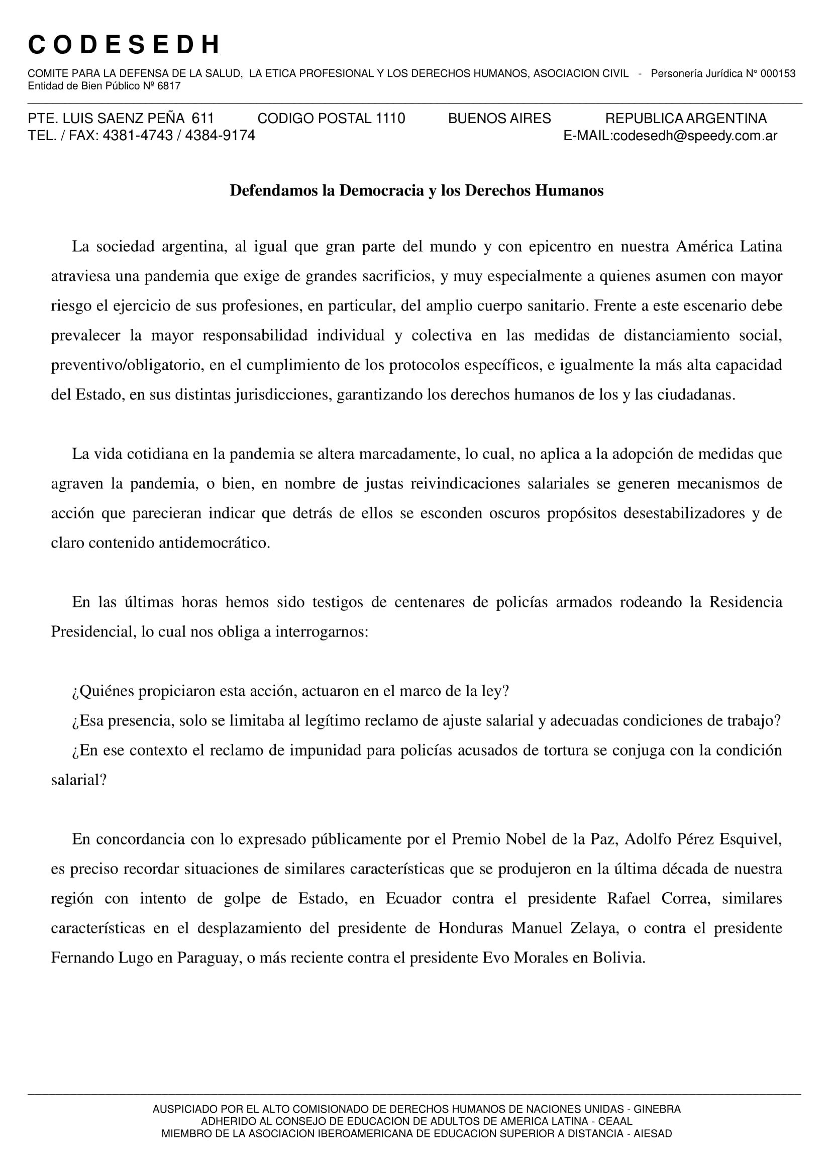 Defendamos la Democracia y los Derechos Humanos