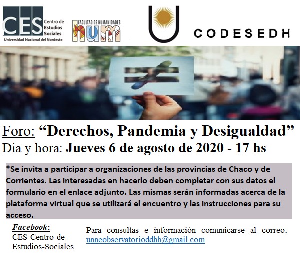 Invitación al Foro: «Derechos, Pandemia y Desigualdad»