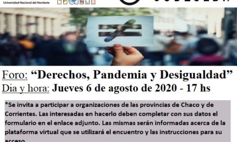 Queremos invitarlos al foro «Derechos, Pandemia y Desigualdad» que se llevará a cabo el día jueves 6 de agosto de 2020 a las 17 hs.