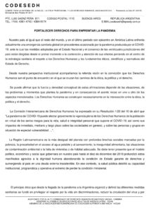 Desde el equipo de CODESEDH queremos difundir con ustedes este comunicado con el fin de fortalecer derechos para enfrentar la pandemia que estamos atravesando.