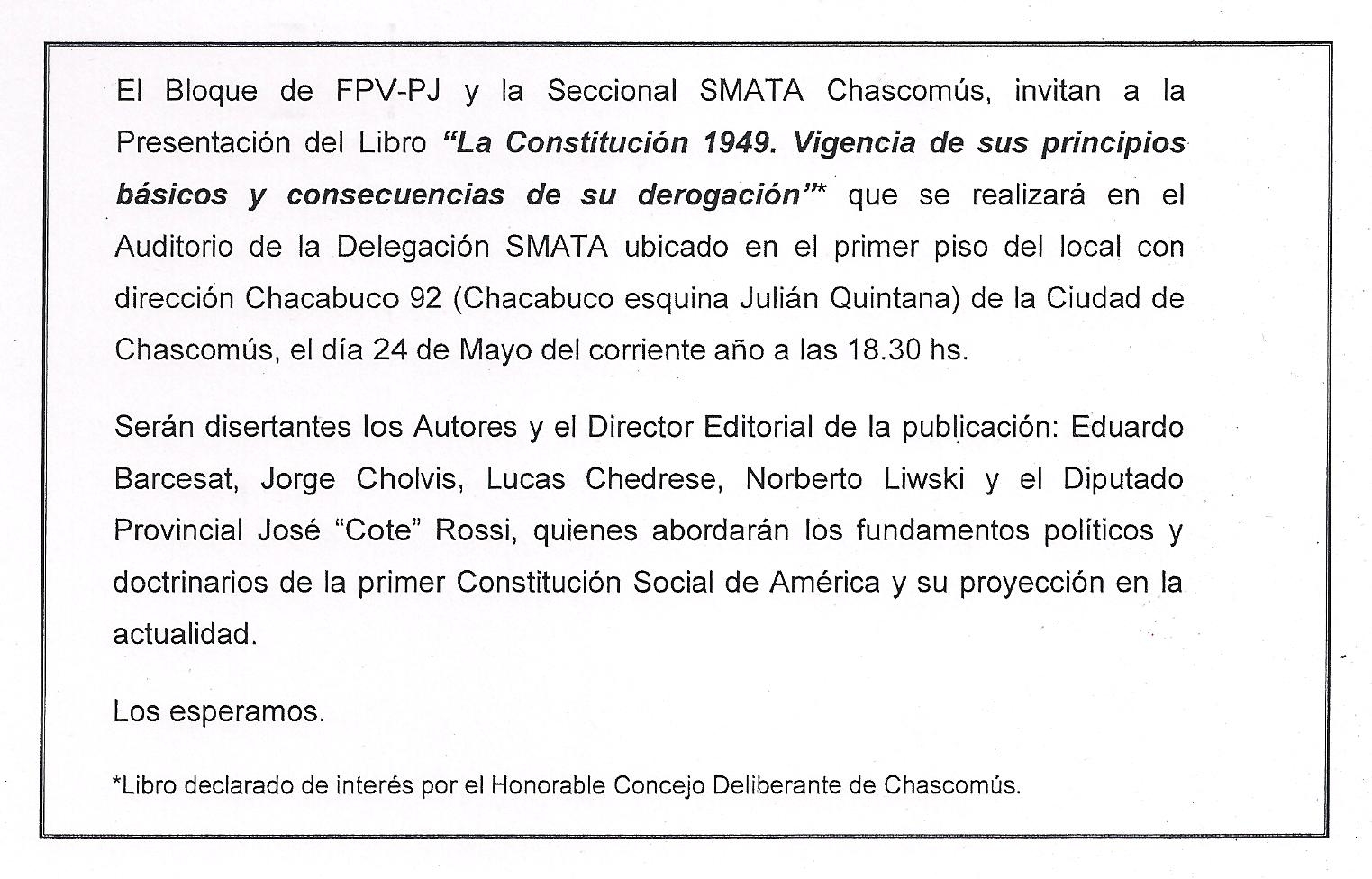 Presentación del libro «La Constitución 1949. Vigencia de sus principios básicos y consecuencias de su derogación»