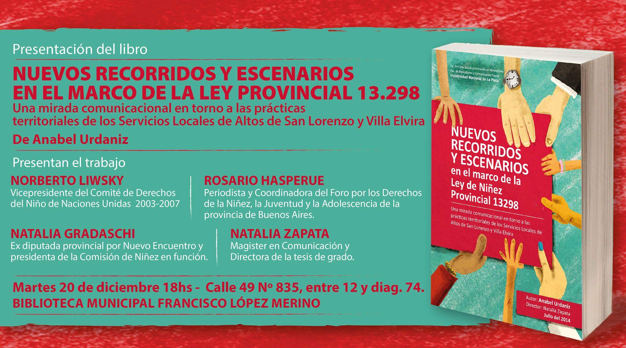 Invitado por la autora Anabel Urdaniz, participé de la Presentación del libro «Nuevos recorridos y escenarios en el marco de la Ley Provincial 13.298. Una mirada comunicacional en torno a las prácticas territoriales de los Servicios Locales de Altos de San Lorenzo y Villa Elvira», realizada el 20 de diciembre en la Biblioteca Municipal López Merino de la Ciudad de La Plata.